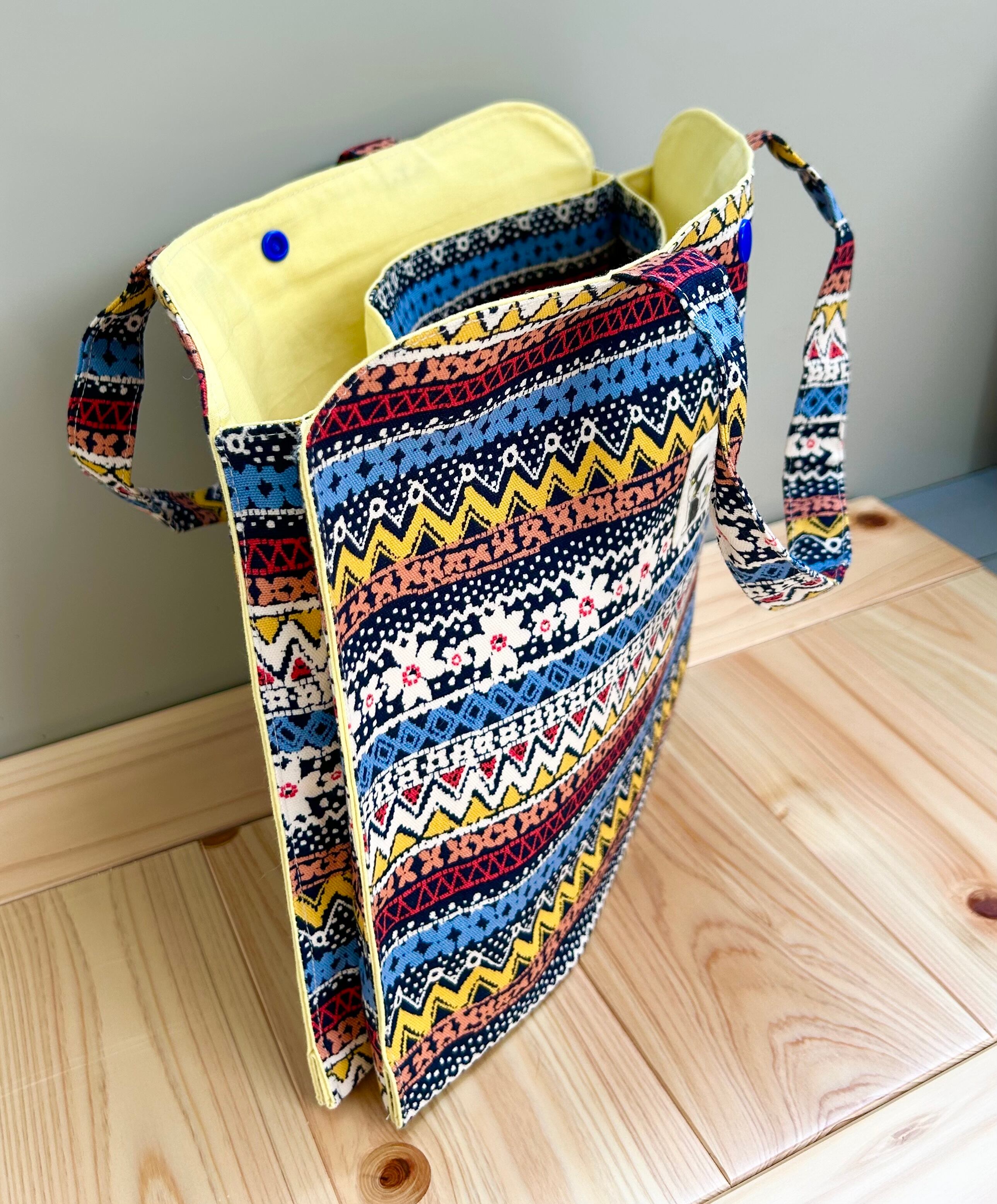 入れるところが3つに分かれた便利なトートバッグ。