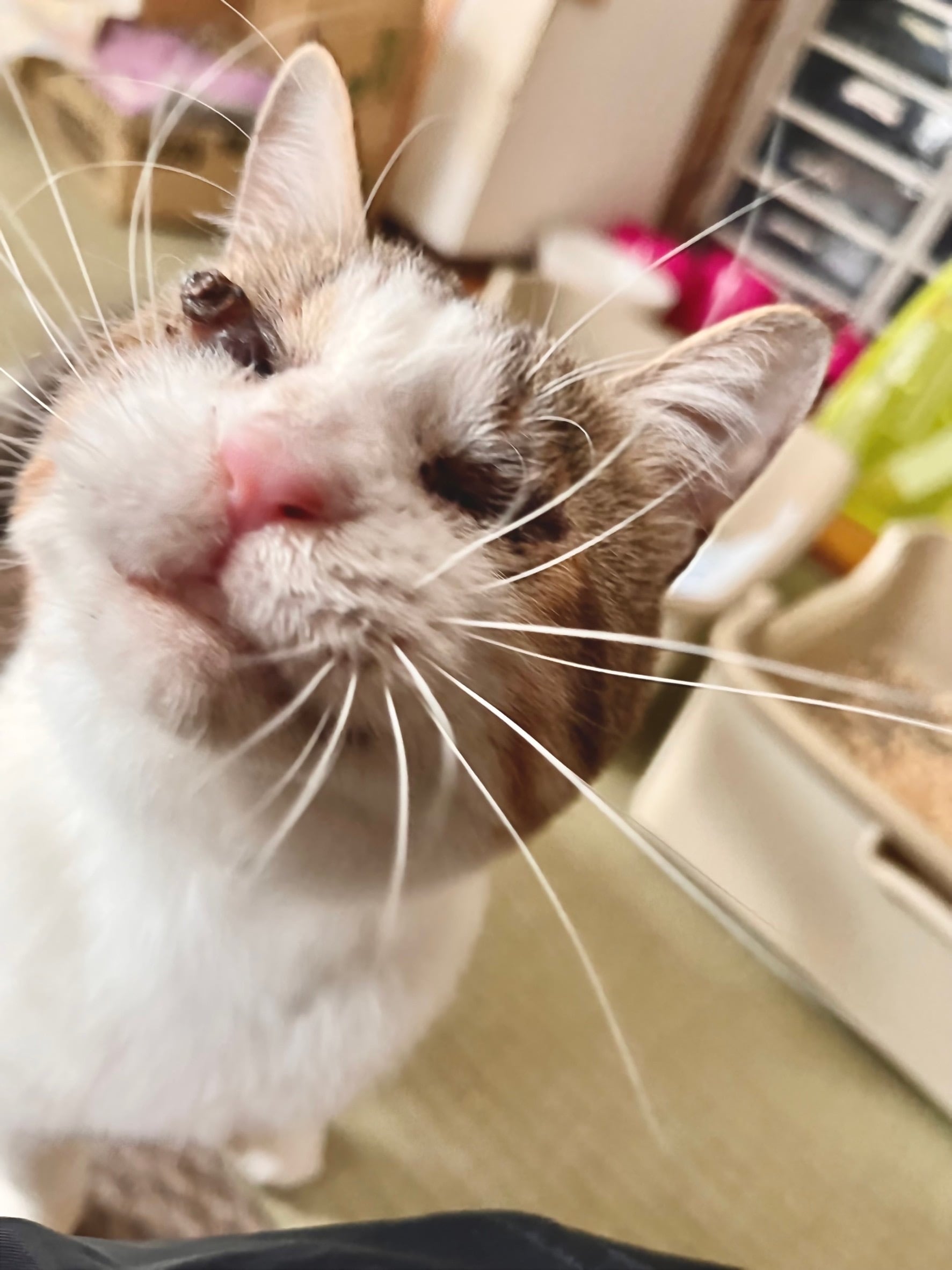 にゃんきちは実際には目が見えません。